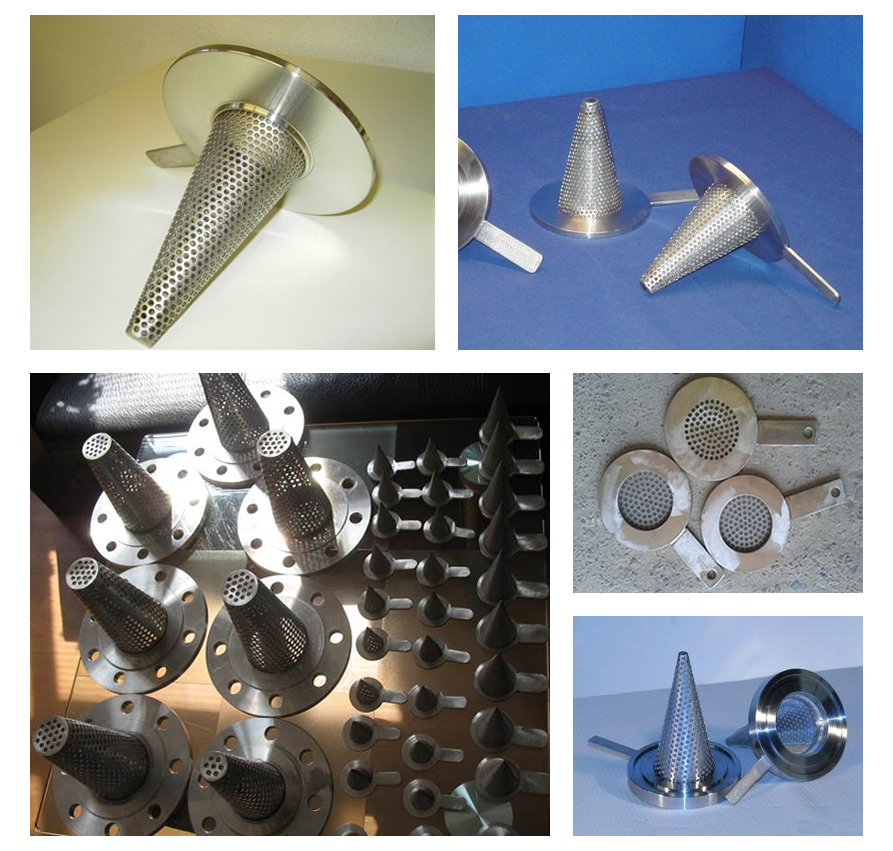 临时过滤器又称锥型过滤器,主要由钢圈、冲孔板、丝网焊制而成。通常用两片法兰对夹进行使用,也可做成法兰连接形式。能除去流体中的较大固体杂质,使机器设备(包括压缩机、泵等)、仪表能正常工作和运转,达到稳定的工艺过程,保障安全生产的作用。当流体进入置有一定规格的临时过滤器里,其杂质被阻档,而清洁的滤液则能穿过滤网进入下游管线中,当需要清洗时,需将过滤器重管线上拆下来进行清洗,清洗完毕后重新装入即可重新使用。因此,使用维护极为方便。